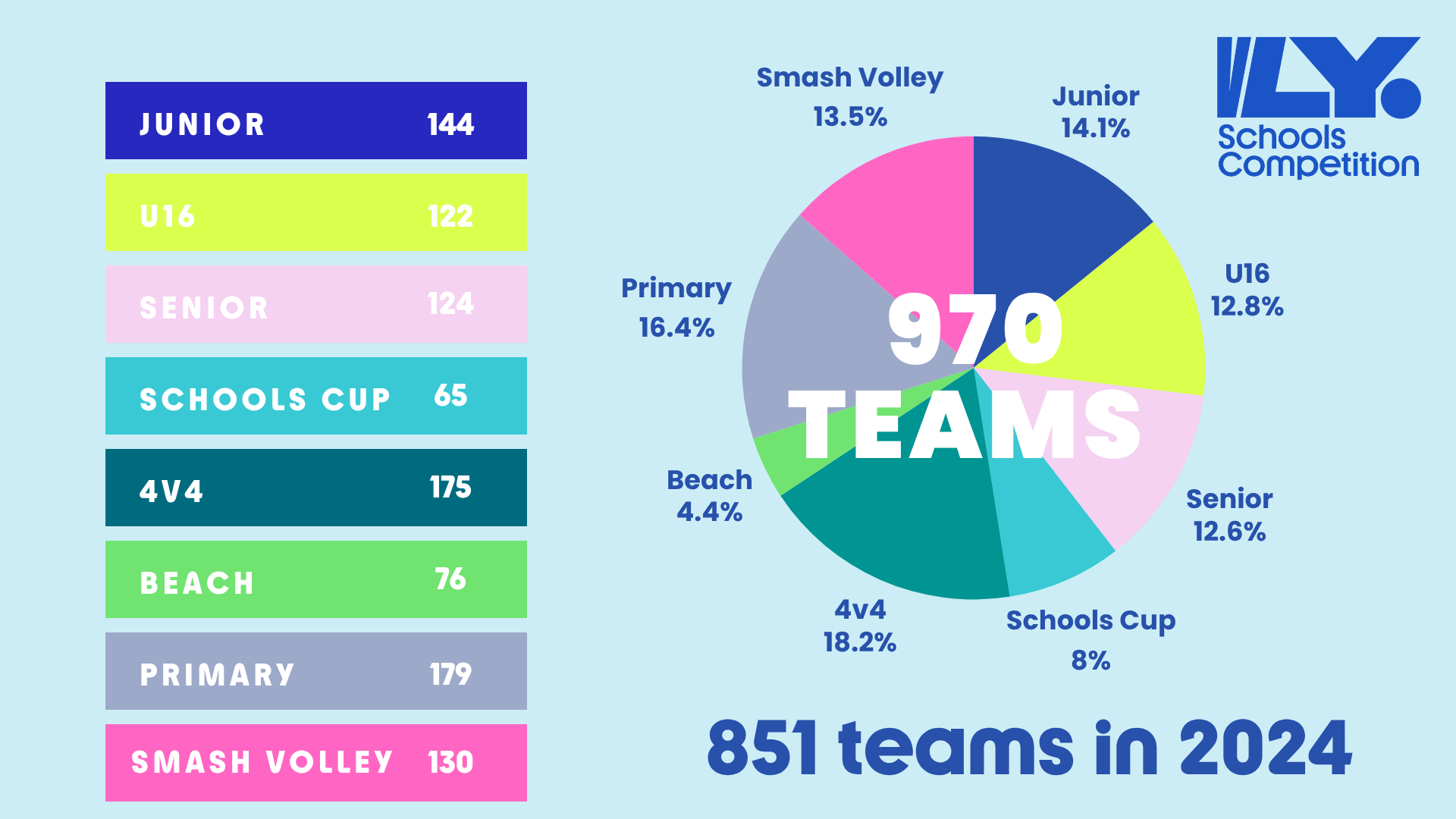 - 970 teams took part in School Volley. Increase of 119 teams.