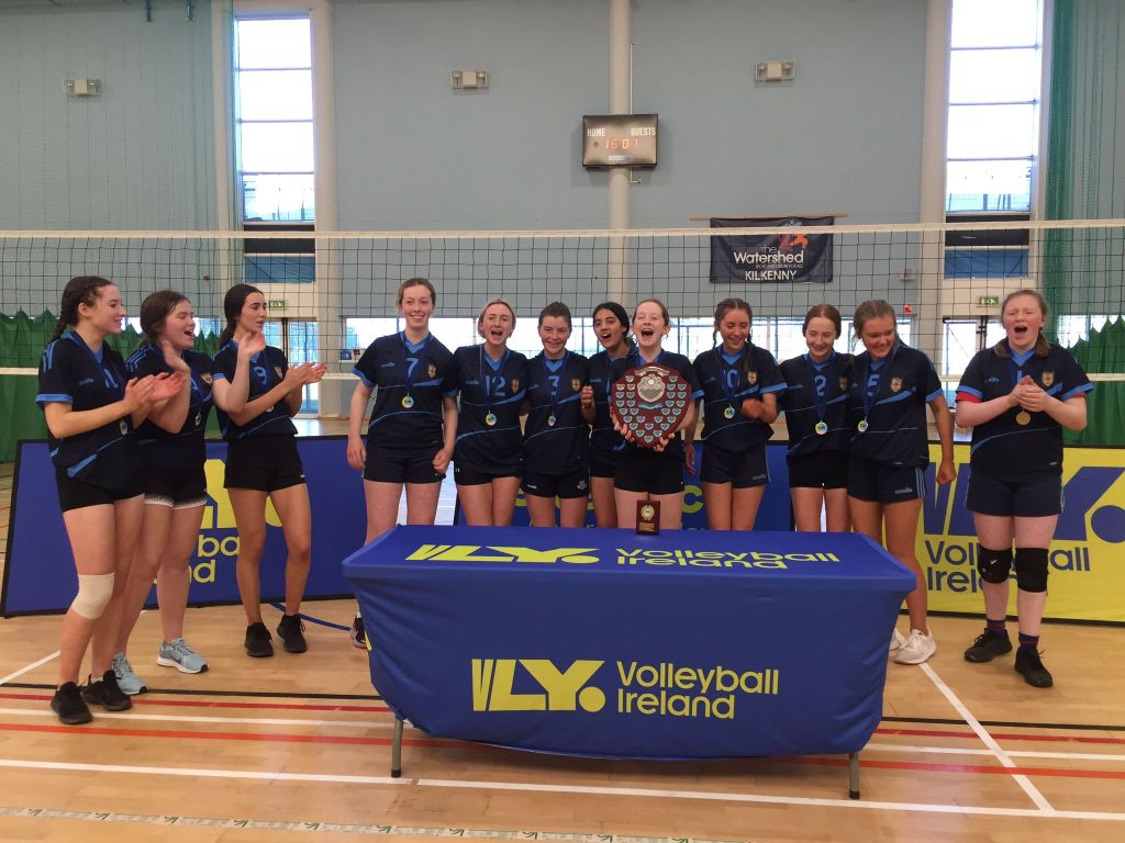 10 teams from all around the country took part in today’s competition in Kilkenny to crown the U16 Girls Division C title.In the morning, teams were divided into 3 pools. Pool 1 set the standard, with 3 strong teams fighting for the head. Mayo school Mount Saint Michael SS brought a solid team, able to serve their way to the top of the pull, followed by Dungarvan College, who played every match fighting for every single ball, and achieving great results. The last in this pool was Roscommon CC, who started their day a bit slowly, but found their confidence on the court and showed great individual skills.